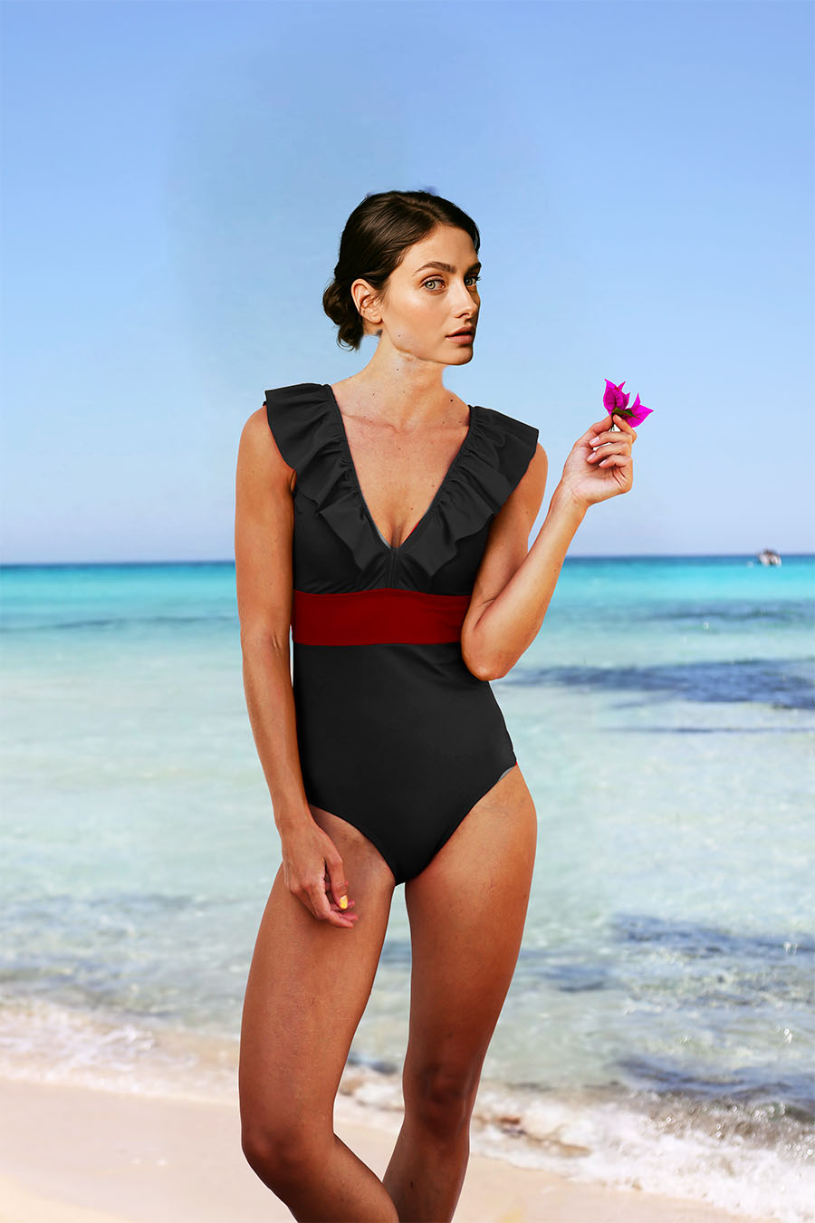 Meet Olivia—your new forever favorite. Designed to blend timeless elegance with effortless ease, this one-piece features a romantic ruffled V-neckline at both the front and back, crafted in supportive fabric that smooths and flatters in all the right places. A modern classic with just the right amount of feminine flair—this is the swimwear staple you'll keep coming back to.